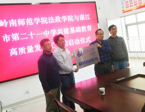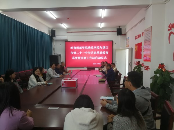 12月2日,法政学院与湛江市第二十一中学共建“基础教育高质量发展工作坊”启动仪式在湛江市第二十一中学弘毅楼会议室举行。学院党委书记李德深、副院长娄伟、历史系主任景东升、二十一中领导班子成员及相关学科教师出席启动仪式。