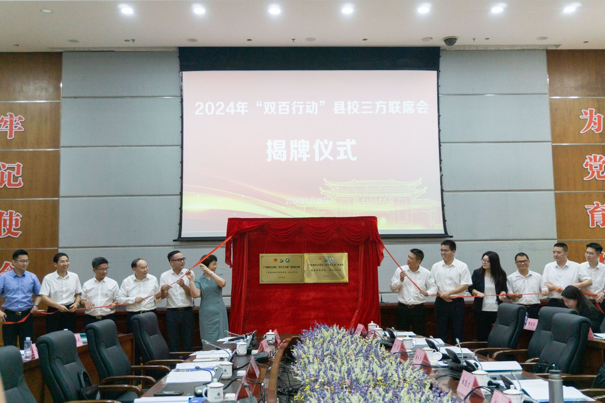 岭师新闻中心讯:5月22日,廉江市·岭南师范学院·广东省外语艺术职业学院在岭南师范学院召开2024年“双百行动”县校三方联席会第一次会议,共同研讨推进“双百行动”共建生根结果。会上,广东省“百千万工程”县域创新基地、省级“博士工作站”、“兴农小院”和广东青年大学生“百千万工程”突击队行动廉江工作站分别揭牌成立。