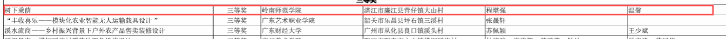 近日,广东省“双百行动”乡村建设规划高校联盟公布了2024年度广东省高校“乡村创新”艺术设计大赛获奖情况,我校学子在本次活动中斩获多个奖项!学校共11项作品获奖,其中一等奖1项,二等奖1项,三等奖3项,优胜奖6项。