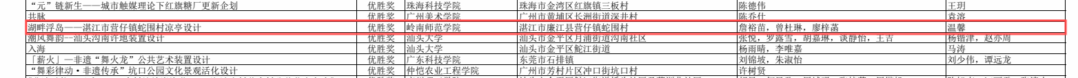据悉,广东省高校“乡村创新”艺术设计大赛旨在发挥高校人才智力优势,促进乡村振兴建设,鼓励参赛师生以艺术人文理念赋能乡村振兴,发挥美育效能,切实提升乡村居住环境。为了做好本次参赛工作,学校美术与设计学院和驻县服务队精心策划,组织学生选取廉江青平、营仔等镇及乡村为设计题材,把环境设计课题拉进村,立足地方本土文化及乡土风情开展城乡规划设计,为美丽乡村建设注入源动力。