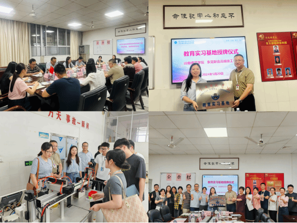 在东莞联合高级技工学校,校长陈广恩对黄展一行表示热烈欢迎。座谈会上,双方详细交流了各自在人才培养、专业发展、师资力量、学生实习就业等方面的情况。双方共同为“岭南师范学院教育实习基地”揭牌,并达成共识,要以本次交流为契机,不断加强实习实训和推进毕业生就业的深度和广度,不断探索不同层次办职业教育的合作新模式,实现资源共享、优势互补、共同发展。会后,黄展一行参观走访了该校各专业实验室和实训车间、慰问了在该校工作的23名校友。