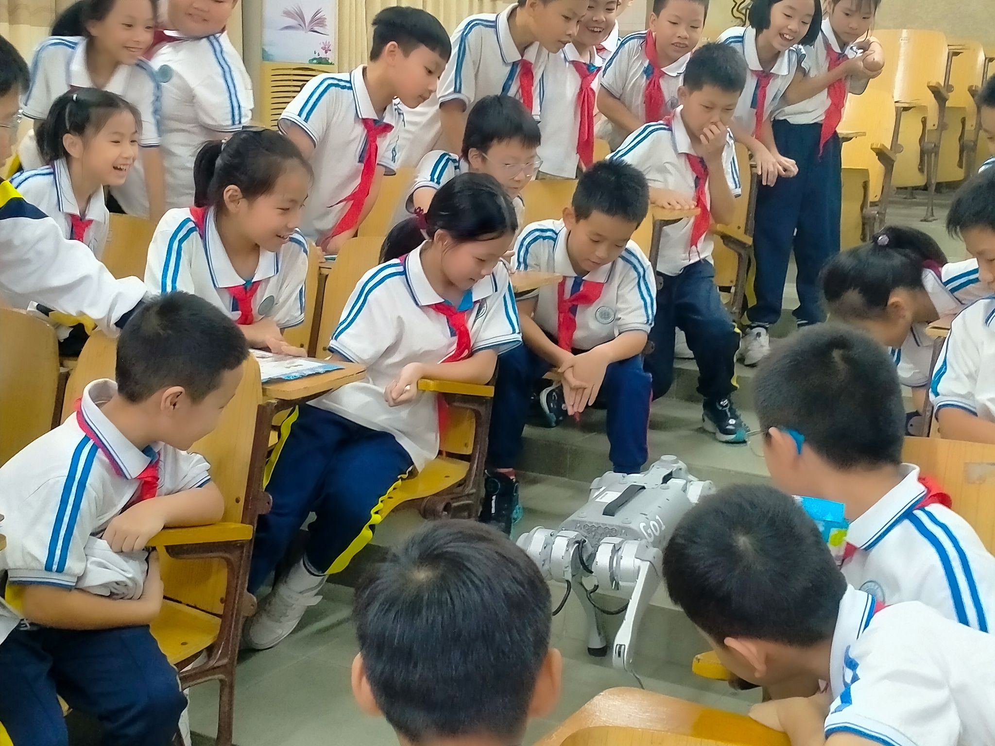 在科普课堂上,来自学院党员志愿者带来了机器人发展简史和3D打印技术的知识讲解,以及演示机器人和3D打印机操作方法。学生们还近距离观摩了3D打印的实际操作流程,并体验了智能机器狗的现场演示,如爬坡、翻跟斗、拜年等动作,引发了现场的阵阵惊叹。通过亲身体验,学生们感受到了科技的无穷乐趣,激发了对未来科技的想象力和创新精神。