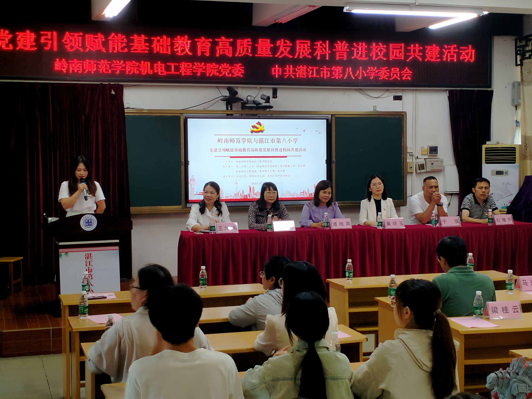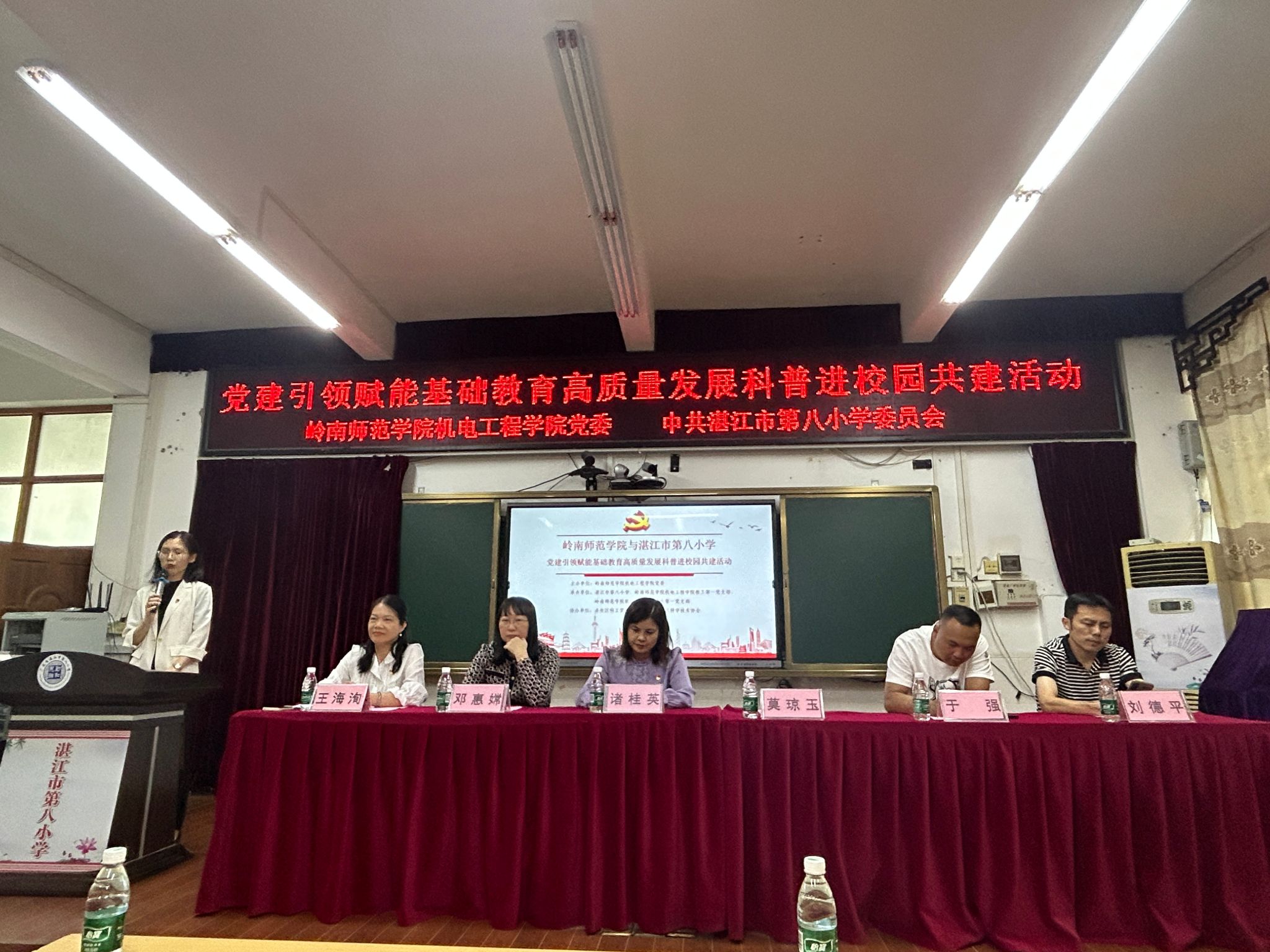 为深入贯彻习近平总书记关于科技创新的重要论述,落实国家科技活动周精神,推进粤西地区基础教育高质量发展,同时响应学校“三成四化”筑峰工程,机电工程学院于10月25日携手湛江市第八小学开展“党建引领赋能基础教育高质量发展”科普进校园共建活动。
