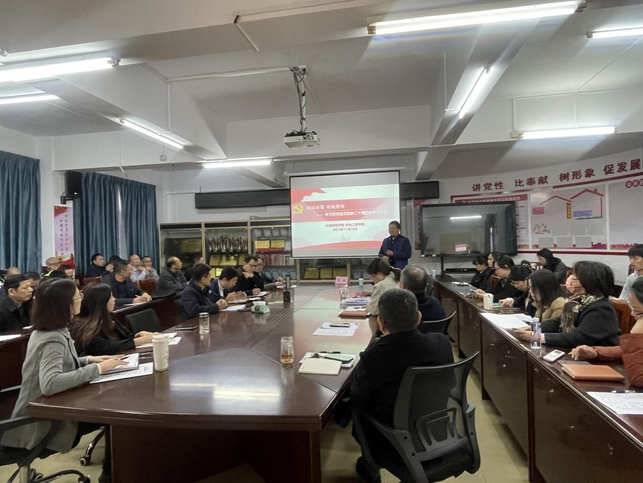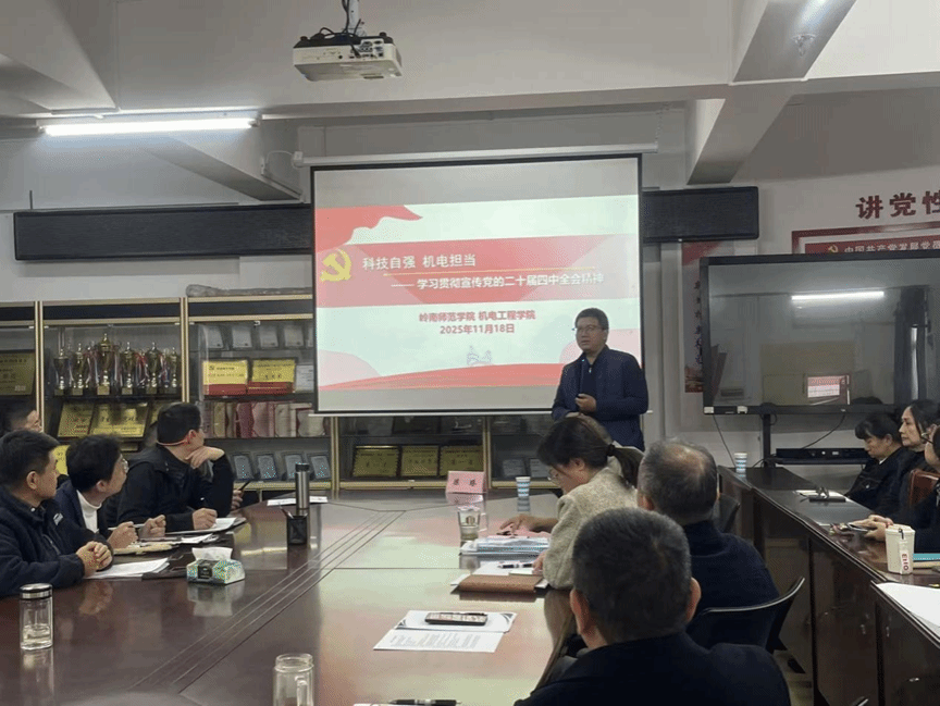 为推动党的二十届四中全会精神入脑入心,凝聚全院学习贯彻强大合力,11 月 19 日下午,机电工程学院根据学校党委部署,特邀商学院副院长陈臻教授,为全体教职工开展宣讲报告。