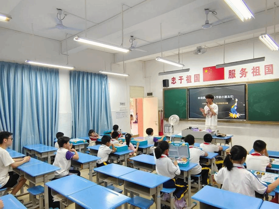 活动开始前,机电工程学院师生党员和湛江市第八小学的老师进行了教学会议,对科普活动的教学计划、流程等相关细节开展深入的交流。