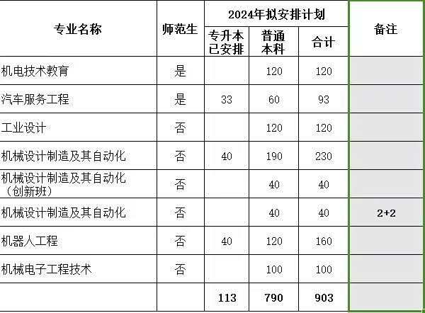 机电工程学院2024年招生计划