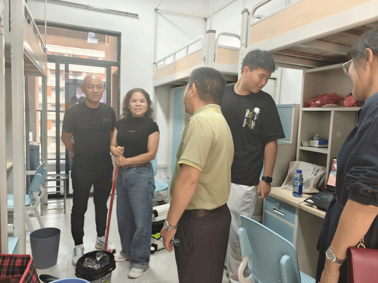 走访期间,学院党委书记莫琼玉热情地与同学们聊天,先是了解了新生们对住宿条件的满意度,认真倾听新生来到新环境后的感受,随后表达了对他们的关怀,以此来打消新生们的陌生感,让他们更好地感受学院这个大家庭的温暖。莫书记对新同学们强调,要注意自身的财产安全,注意防诈骗,大学四年里要权衡好生活和学习的关系,不断去挑战自己,打开自身的视野,注重自身专业能力和个人素养的提升,为以后的就业打下坚实的基础。院长弓满锋亲切询问了新同学们的入住情况和到校感受,细心检查宿舍硬件设施等,并提醒新生应当注意自身的全面的发展,积极参加社会实践及志愿服务等,不要过度松懈,沉迷于网络虚拟世界之中,要多走出宿舍培养自己的兴趣爱好和专业技术能力,成为一名对自己负责、为学院争光的优秀大学生。