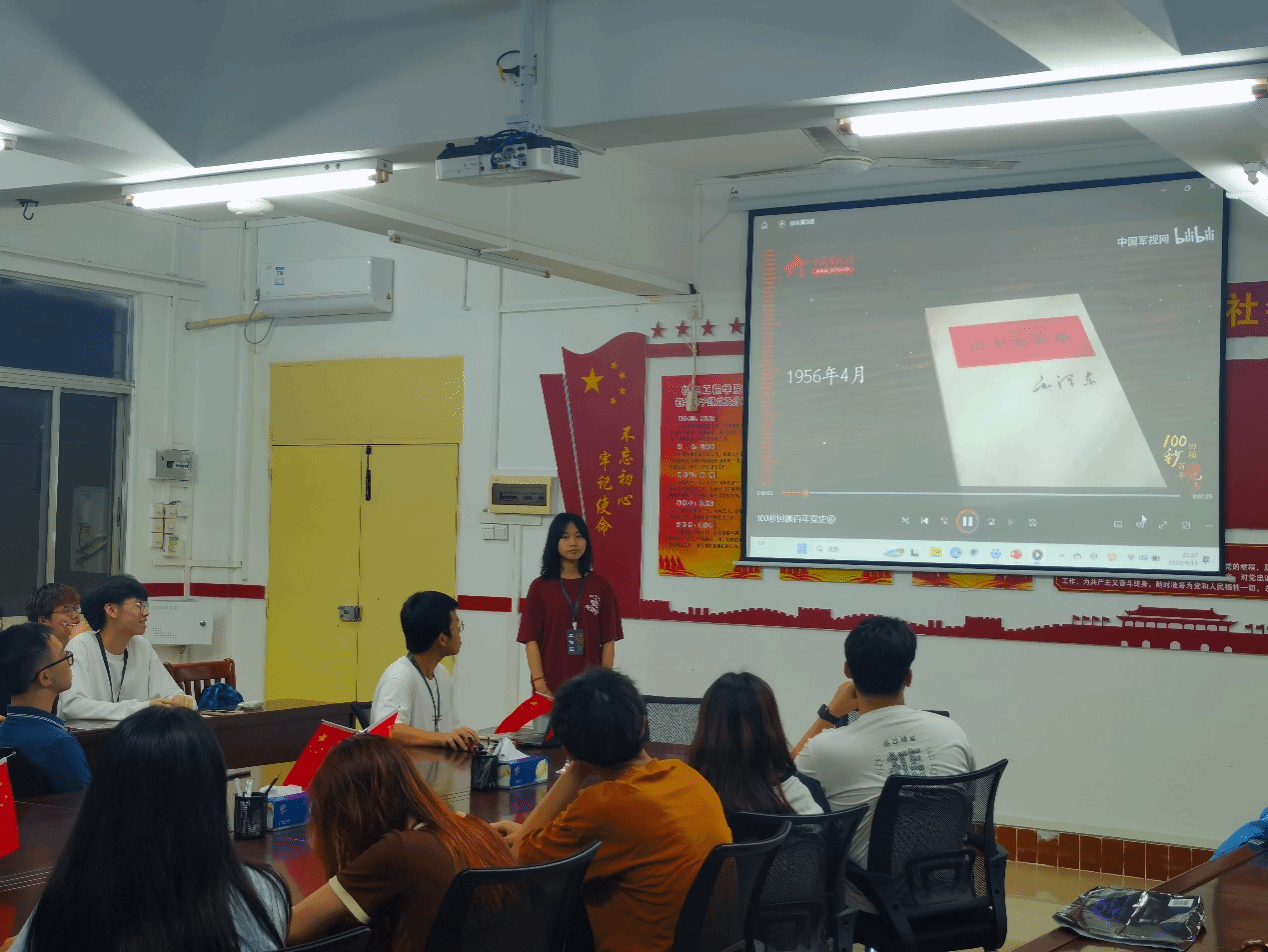 会议伊始,宣传部工作人员吴芷妍以“以史为鉴,开创未来”为主题进行宣讲。回顾了党的百年历程并深度学习了党的五项基本原则及五个坚持。