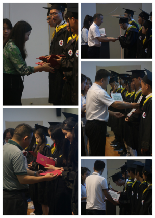 领导、老师为各专业毕业生颁发学位证书和毕业证书(孔繁钰 摄)