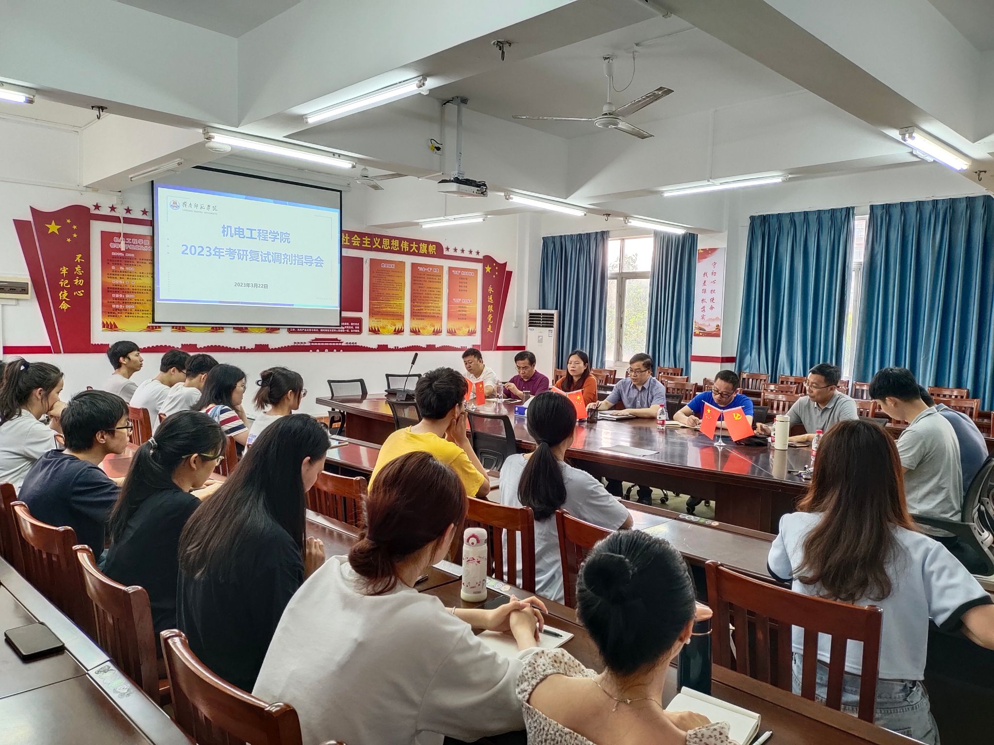 3月22日,为进一步做好毕业生升学深造工作,机电工程学院在第二教学楼401室举行了2023年考研复试与调剂指导会。学院院长弓满锋教授、党委副书记黄展、创新创业教育学院副院长张洪军副教授、学科负责人王广斌教授、工业设计系主任万福成副教授、智能制造系主任马兴灶博士、李华副教授、吴卫国老师、辅导员、2019级考研初试成绩通过国家线的毕业生参加了此次指导会。会议以线上、线下相结合的形式开展,由辅导员庞可超主持。