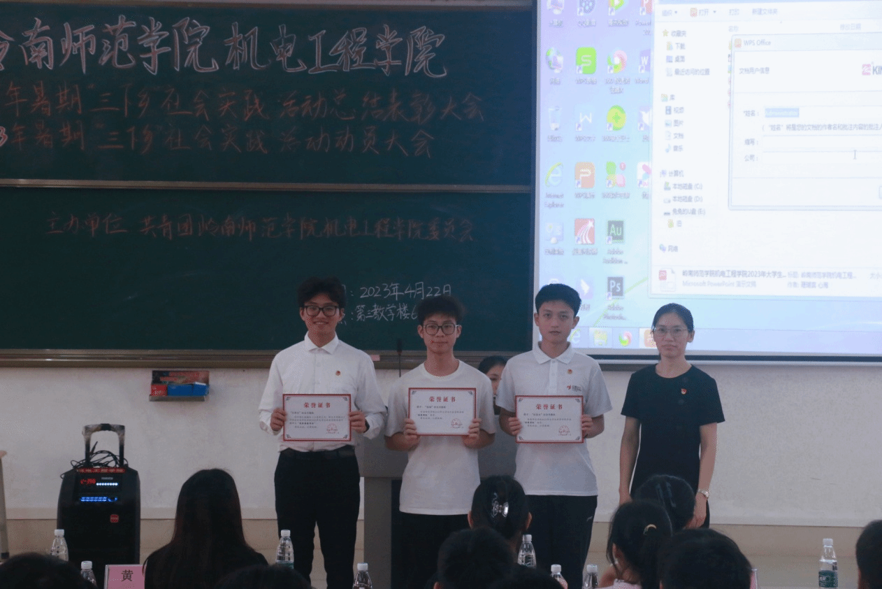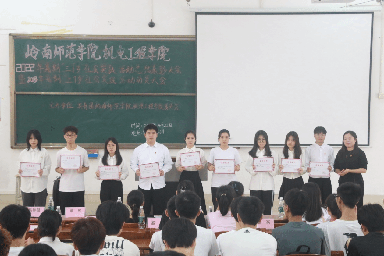 近日,机电工程学院于教三—611室举行2022年暑期“三下乡”社会实践总结表彰暨2023年暑期“三下乡”社会实践动员大会,旨在深入学习宣传贯彻党的二十大精神,总结暑期社会实践活动经验,巩固实践教育成果,进一步引导广大青年学生在社会实践中受教育、长才干、作贡献。学院党委书记莫琼玉、副书记黄展,团委负责老师吴梓健,辅导员江影东、陈柳平、2022年暑期“三下乡”社会实践活动获奖同学以及全体学生干部参加了会议。