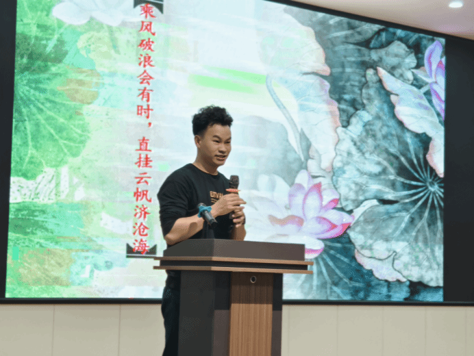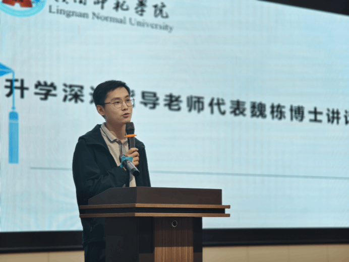 考研指导教师代表魏栋博士讲话。他结合自身考研经历向2021级同学提了三点建议:一是希望同学们勇于追梦,敢于挑战,立下考研目标;二是希望同学们不盲目自信,但也不妄自菲薄,选好目标院校;三是希望同学们注意方法,科学制定复习计划,找一个志同道合的考研搭子,互相学习,共同进步。