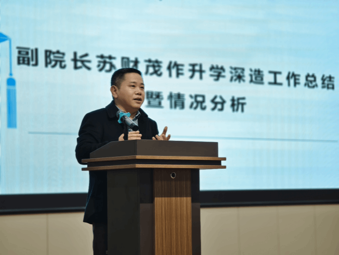 苏财茂作工作总结。他高度总结了学院2023年考研工作情况,深刻分析了2024年考研形势,为2021级同学提供一个正向的导向和实际的参考。最后,他对2021级全体同学提出了四点建议:一是要提早做好规划,调整心态,轻装上阵;二是要提前准备,制定属于自己的复习计划;三是合理分配时间,注意身体健康,加强体育锻炼;四是坚定考研决心,不放弃,不气馁。