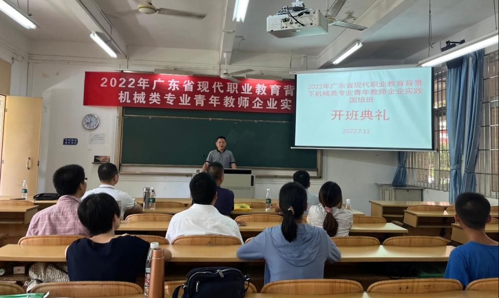 7月11日上午,由我校机电工程学院承担的“2022年现代职业教育背景下机械类专业青年教师企业实践国培班”开班典礼在第一教学楼103室举行。来自肇庆、开平、茂名和湛江等市的22名中等职业技术学校教师,为提升专业技能水平和职业素养,进行为期28天的理论和企业实践学习。由于各地疫情的影响,培训采用线上线下同步进行,中高风险地区的学员通过腾讯会议线上学习,湛江市内及其它低风险地区的学员线下学习。开班典礼由机电工程学院副院长苏财茂主持。