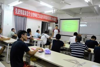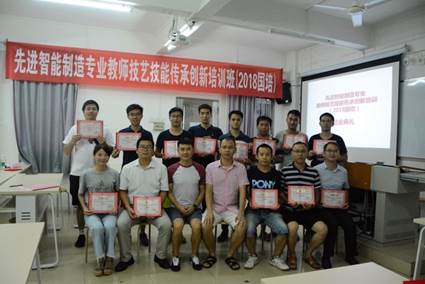 2018年8月21日下午5:00,先进智能制造专业教师技艺技能传承创新培训班结业典礼在生化楼202室举办。此次结业典礼由项目负责人隋广洲老师主持。曾一起生活学习将近一个月的各位学员们坐在课室里,内心有点复杂,既高兴又不舍。本次结业典礼由机电工程学院教学秘书隋广洲老师主持,参加结业典礼的人员有班主任洪新密和20多名来自东莞、湛江、广州、肇庆等地区完成结业的中等职业学校教师。
