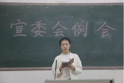 各部门干事按照顺序依次发言。他们对上学期以及开学第一个月的工作进行总结,讲述了在工作中的收获,以及由于工作经验不足导致在工作中出现的问题,同时表示在接下来的时间里,努力做好自己的工作,祝愿宣委会发展越来越好!