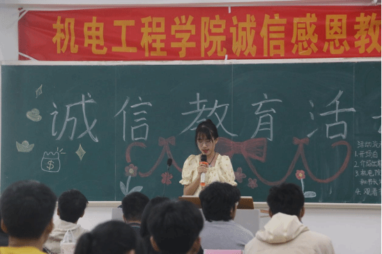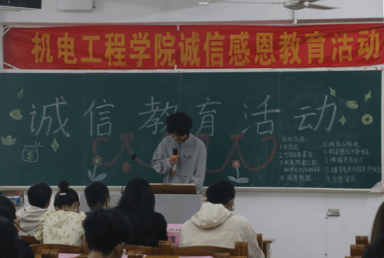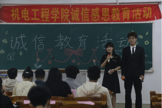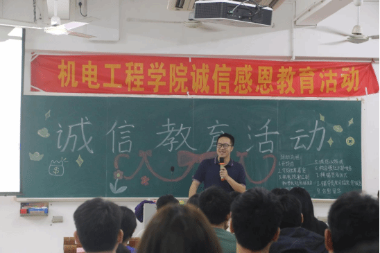 3月26日上午,机电工程学院于弘雷楼206开展诚信教育活动, 辅导员庞可超老师、校自强社干部代表、各二级学院干部代表、机电院各班的副班与贷款生、全体勤工干部出席了本次活动。