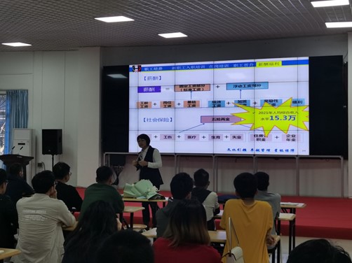 会上,广州市长岛光电机械厂党群人力处处长刘海银进行招聘宣讲。她围绕该企业的性质、岗位需求、薪资待遇、招聘流程等进行了详细的讲解,强调了特殊岗位需要具备的相关技能,指出了需要人员的学习力、忍耐力、坚持度等重要品质。三亚分厂工程师邓金平也就三亚目前所需要的技术人员进行了详细地说明,招聘专员陈树金也再次希望同学们认真思考、做好未来的职业规划,全盘考虑做下决定。