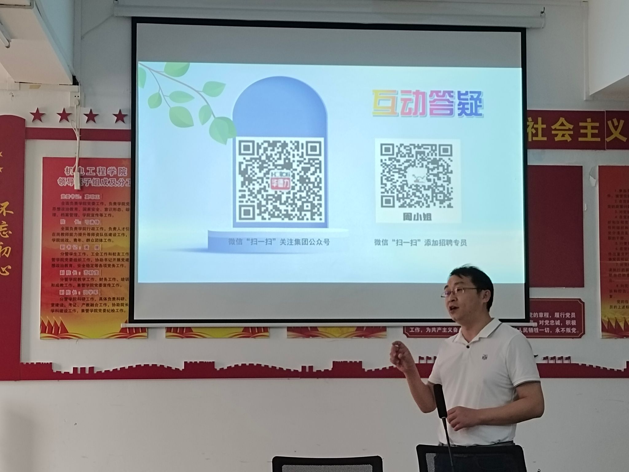 会上,招聘负责人高攀通过企业宣传片、PPT等全面介绍了华德力集团的基本情况,包括集团发展历史、发展规模、下属企业概况、未来前景、员工薪酬福利待遇、工作环境、晋升及培训体系等。