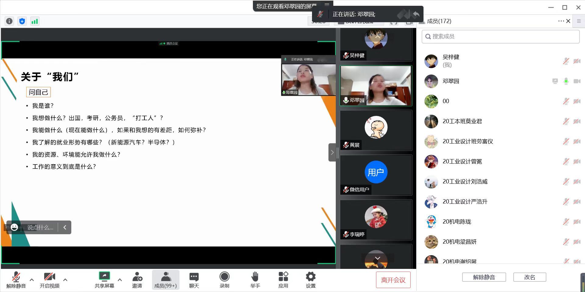 在交流中,同学们就感兴趣的“专业能力提升路径、自我定位和就业去向”等问题与邓翠园进行了热烈的交流讨论,同学们纷纷表示受益匪浅。