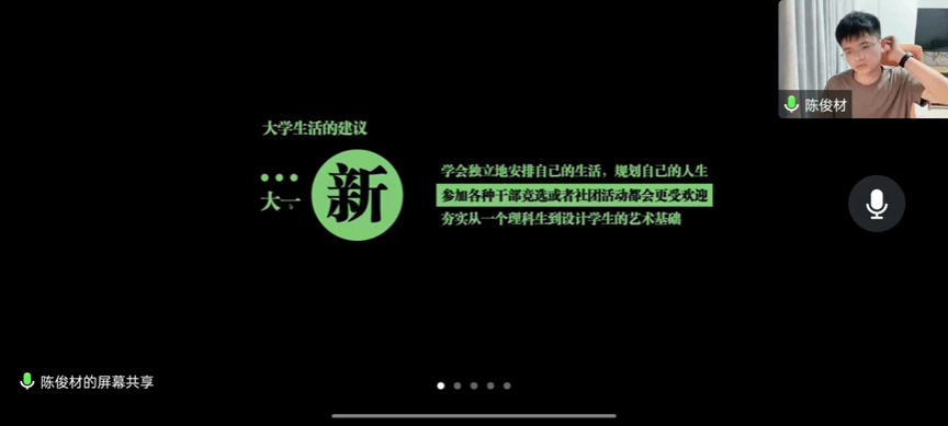 11月11日晚,机电工程学院邀请了2016届工业设计专业优秀校友陈俊材在教五611举办了以“现在的你·十年前的我”为主题的校友线上报告会,分享励志故事,指引学生成长。2020级工业设计班主任林舒瑶,2022级和2021级工业设计全体学生参加了本次活动。