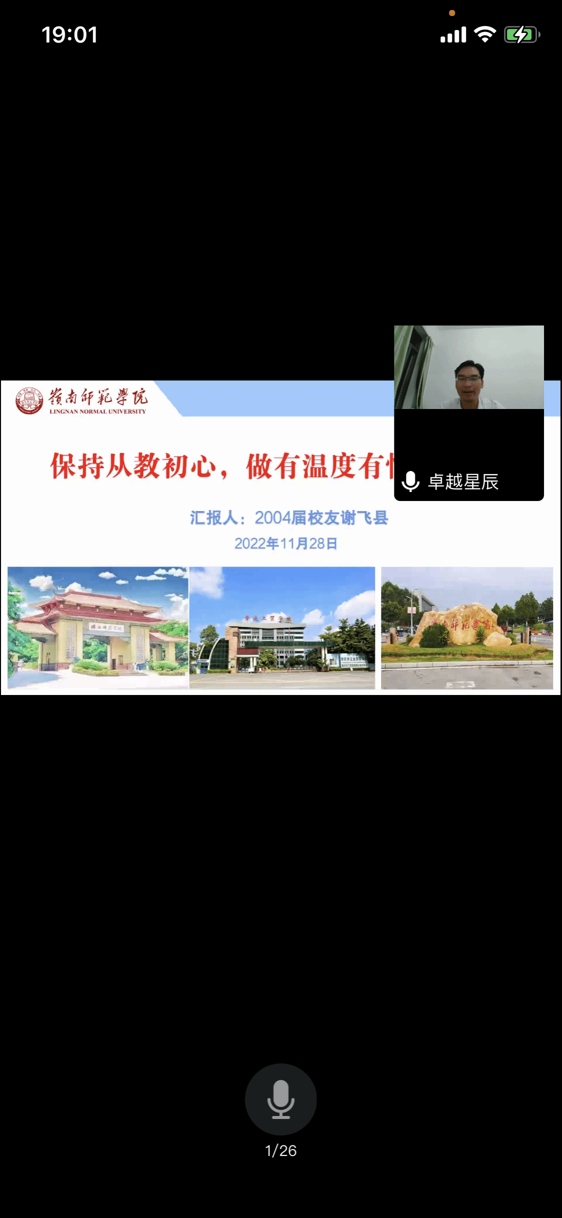 11月28日,机电工程学院在腾讯会议举办了校友大讲堂活动。活动邀请到广东省第十三次党代会代表、2004届机电技术教育专业毕业优秀校友谢飞县作主题为“保持从教初心,做有温度有情怀的教师”的就业专题讲座。机电工程学院党委副书记黄展,辅导员杨丽君、陈柳平以及2022级全体新生参加了本次讲座。
