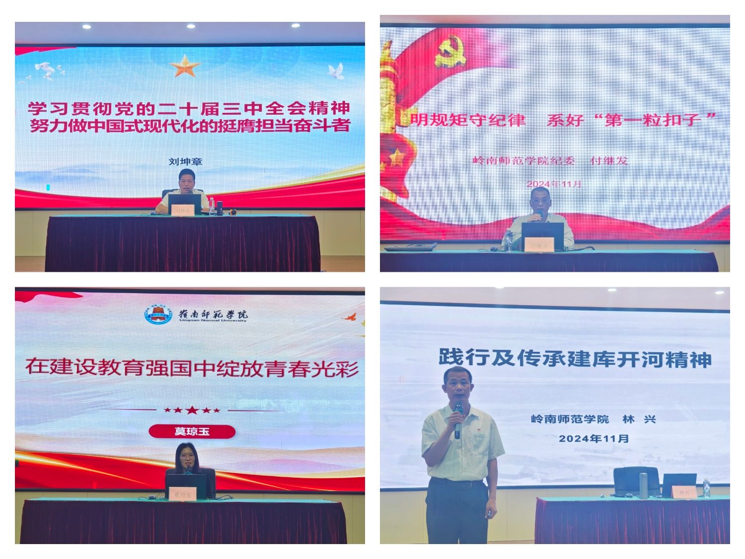 11月2日,机电工程学院分党校于教三511会议室举行了2024年第二期党员发展对象培训。岭南师范学院党委常委、宣传部部长刘坤章、学校纪委副书记、纪检监察室主任付继发、机电工程学院党委书记莫琼玉、马克思主义学院林兴副教授为党员发展对象授课。