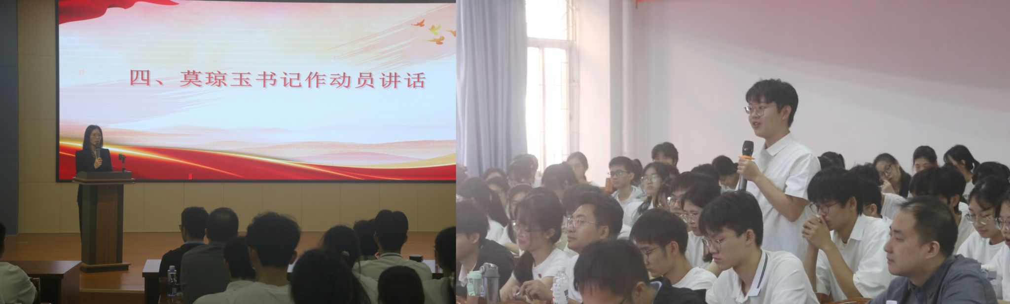 莫琼玉以《在建设教育强国中绽放青春光彩》为授课主题。结合高校、青年如何深入学习贯彻习近平总书记在全国教育大会上的重要讲话精神,深刻分析了教育、科技、人才三者的内在规律和发展逻辑,并以中国首位女航天飞行工程师王浩泽、中国“芯”青年领军人黄芊芊等优秀青年楷模的事迹引领学员们坚定理想信念,增强创新能力和实践能力,严谨治学,诚实守信,养成独立思考、自主学习、锻炼身体等好习惯,管理好时间,克服自己的惰性。