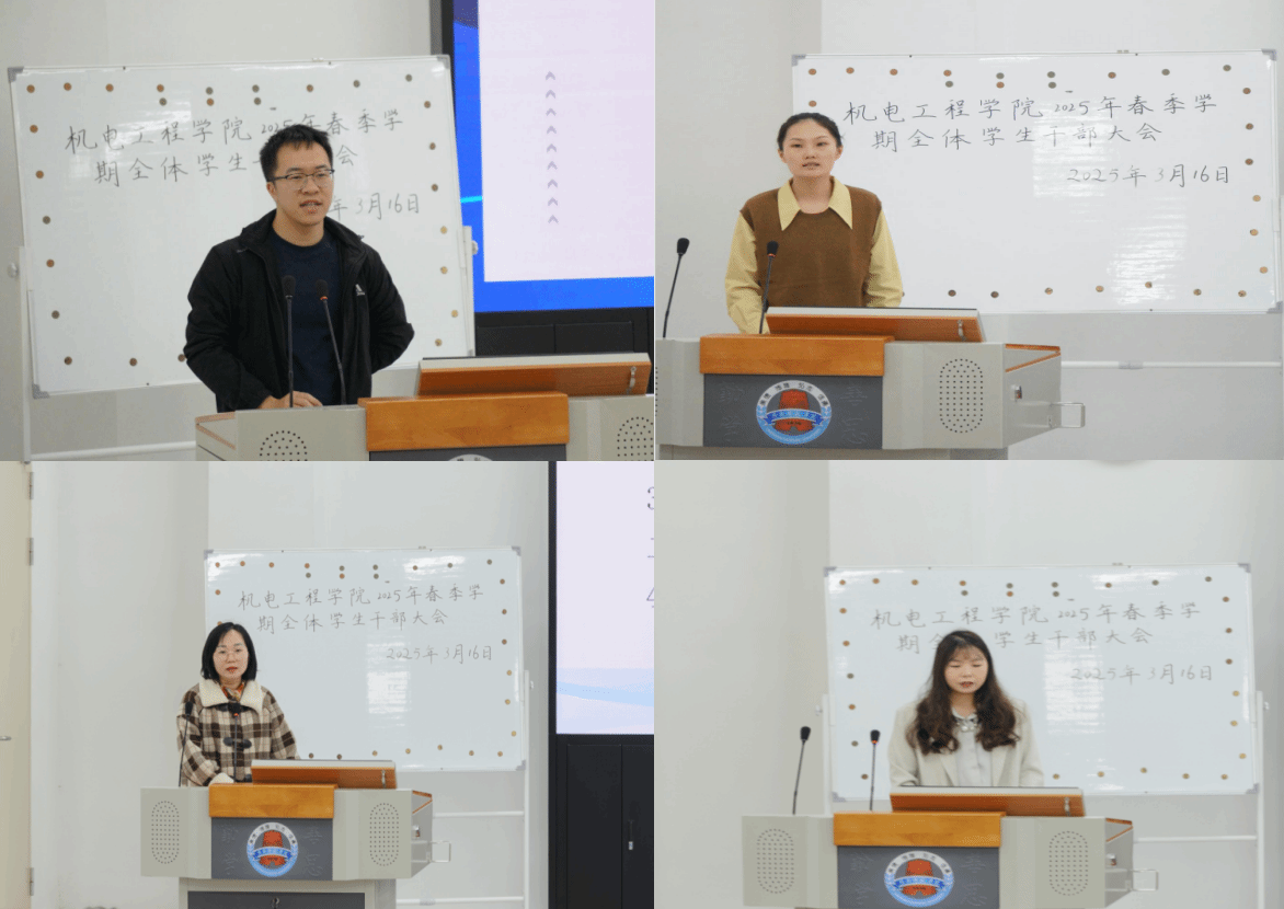 为总结学院学生工作成效、谋划新学期发展方向,3月16日,机电工程学院在湖光校区集贤楼201室召开2025年度学生工作会议。机电工程学院党委副书记黄展,辅导员庞可超、蔡文、汤珍珍、李玫、学院全体学生干部,2024级班长、团支书参加会议。