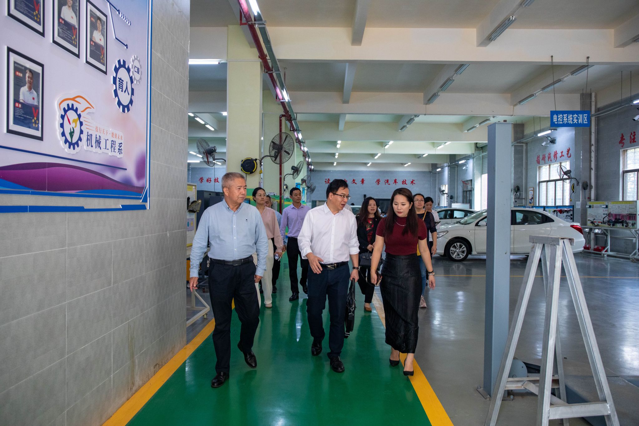 会后,弓满锋一行参观了该校各专业实验室和实训车间、竞赛基地等,实地考察了该校的教学设施及实践教学成果。