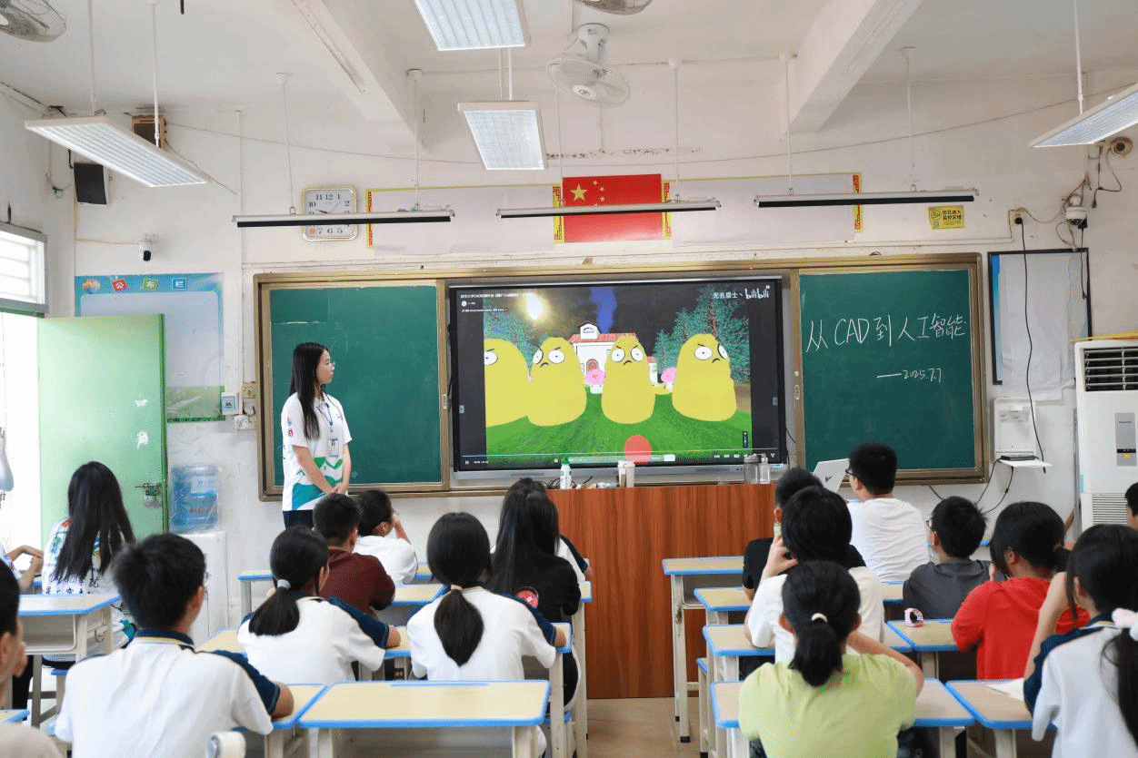 “同学们看,这个《植物大战僵尸》的模型就是通过三维建模实现的。”突击队志愿者黄洛怡以生动有趣的方式开启了“从人工智能到CAD”的主题课程。通过设置“找不同”互动环节,引导学生关注建模的精准性;在实践环节,师生们共同完成了小绵羊等趣味模型的绘制。“原来科技可以这么酷!”一位同学在成功完成作品后兴奋地说道。