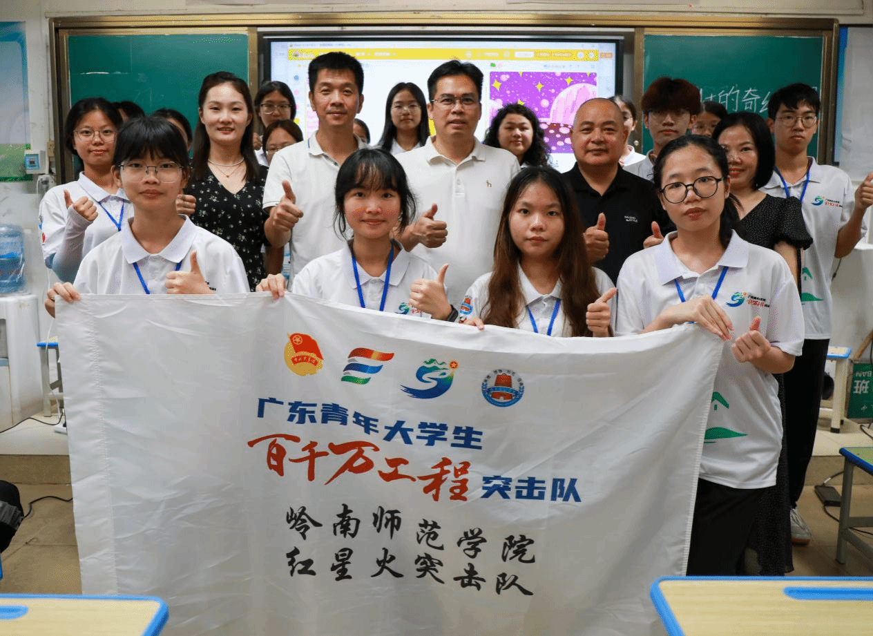 盛夏七月,科技之风吹拂南粤大地。近日,由岭南师范学院机电工程学院教工第一党支部指导,学生第一党支部成员组成的暑期社会实践队——红星火突击队为廉江五中带来两场科技盛宴,以党建共建推动乡村教育振兴。