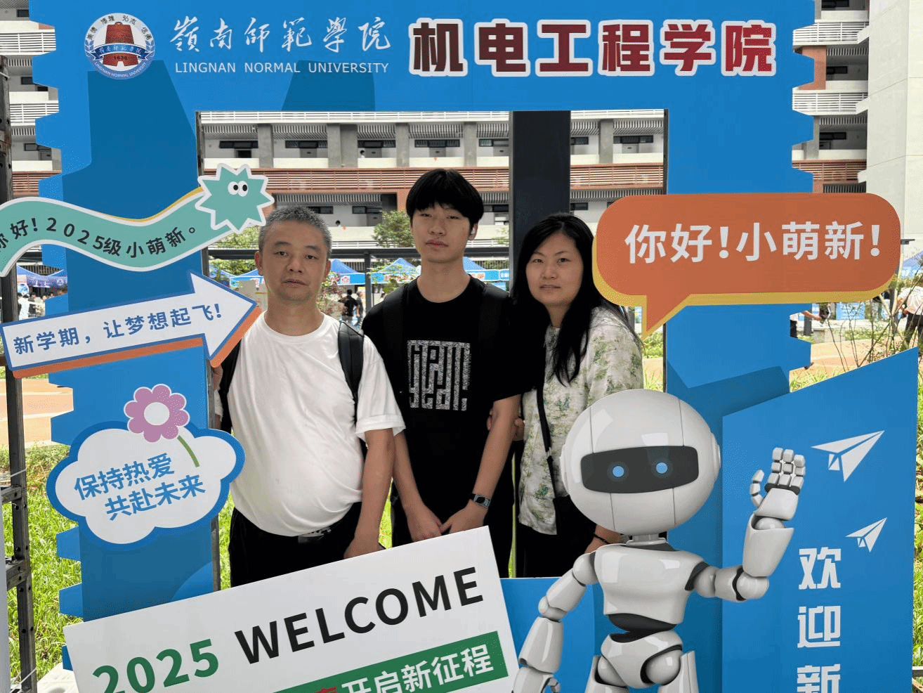 打卡点位创意十足,定格难忘入学瞬间。学院特别设置了拍照打卡点,打卡点以机电元素为设计主题,融合机器人等专业特色,并设有创意标语,新生们纷纷在此驻足,与家人、新同学合影留念,记录下踏入大学校园的第一份珍贵记忆。