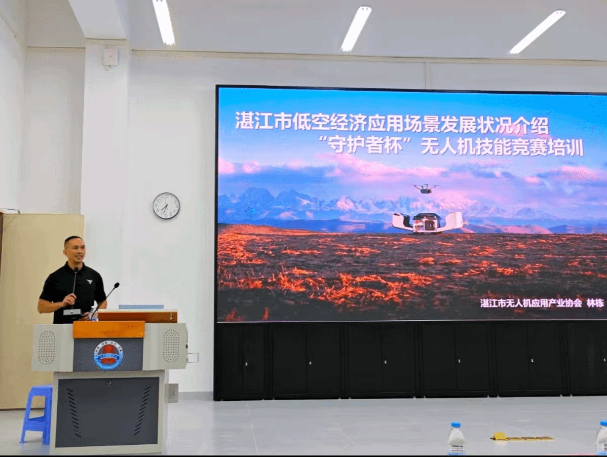 9月15日19:20至21:00,岭南师范学院湖光校区集贤楼201,一场聚焦“湛江市低空经济应用场景发展状况介绍及无人机技能竞赛培训”的专题讲座顺利开展。本次讲座邀请了湛江市无人机应用产业协会林栋会长,讲座由机电工程系教师李卫主持,来自机电工程学院24级的270余名学生参加,另外机电工程系赵高源老师和24级辅导员林铭增老师也参加了此次讲座。