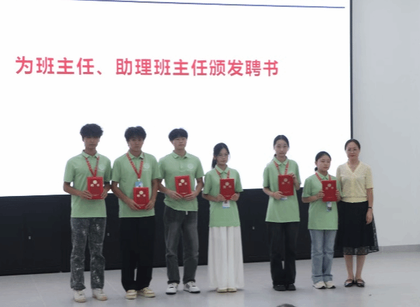 会议进入聘书颁发环节。弓院长为2025级机电系各班班主任颁发聘书,夏主任为助理班主任颁发聘书。随后,全体参会领导、教师与新生共同合影留念,定格这一意义非凡的时刻。至此,2025级机电工程系师生见面会暨专业介绍会圆满落幕。