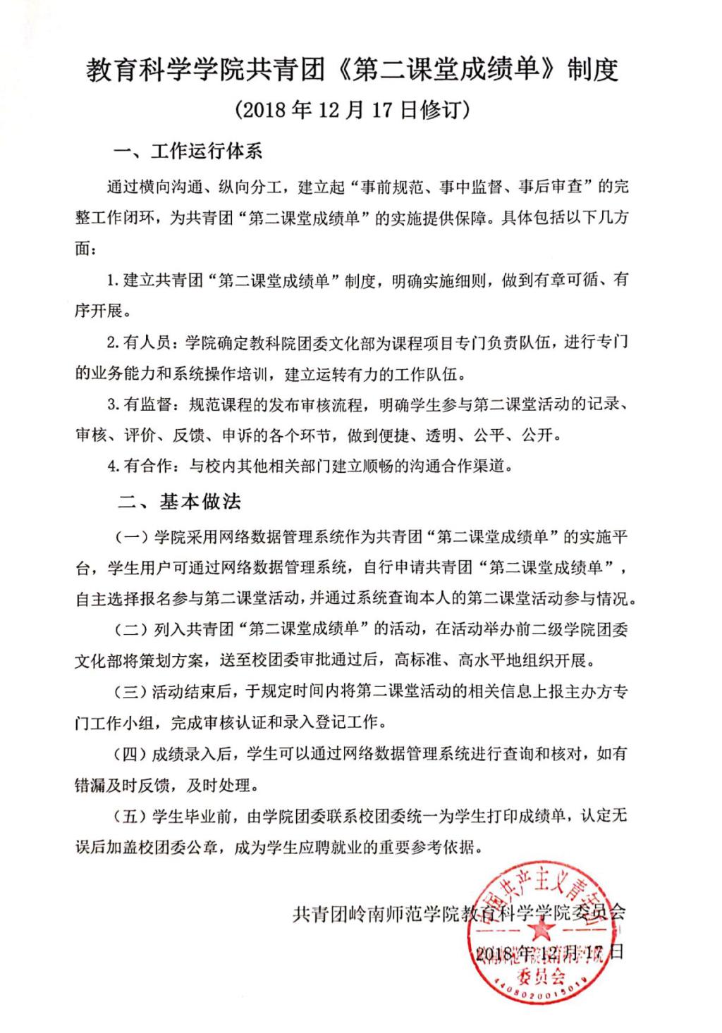 (1)按照规定执行由学校颁发的《第二课堂成绩单制度实施方案》