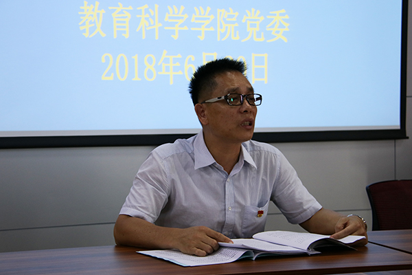 范兆雄表示,要在思想上高度重视党建工作,在工作中不断改进。贯彻落实“党领导一切”的思想,落实二级学院的党政工作。开展细致、有益的工作,重视学生思想引导工作,把握学生思想动态,排除学生工作安全隐患。