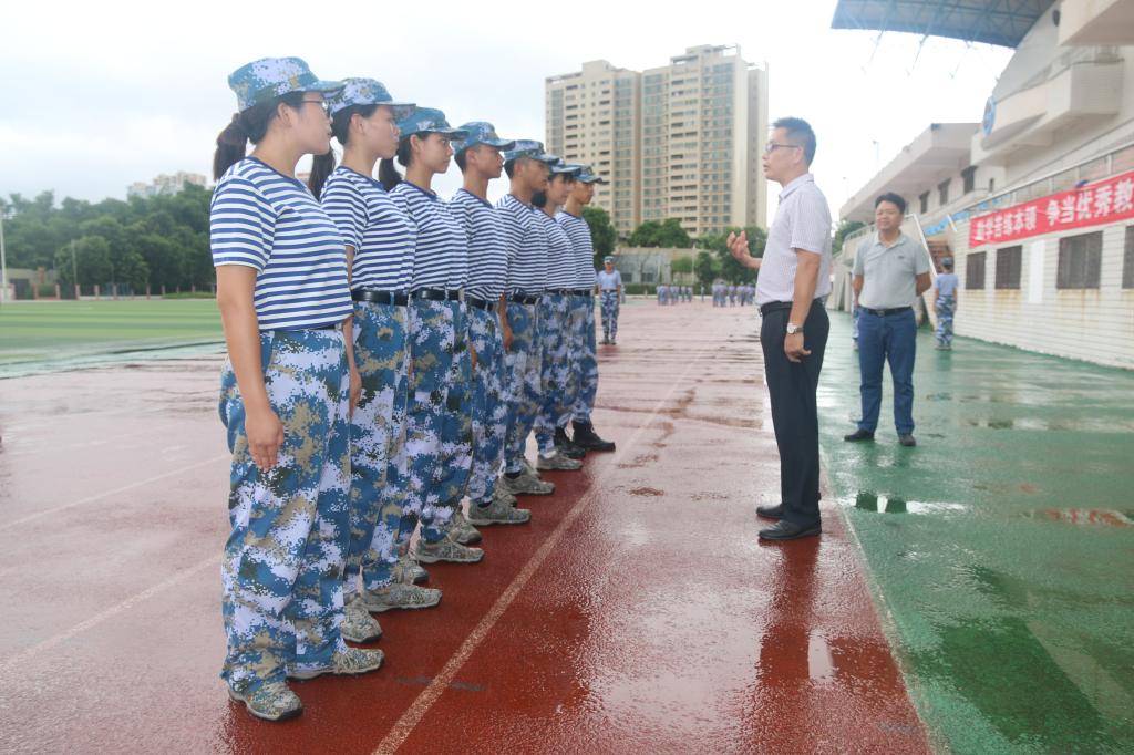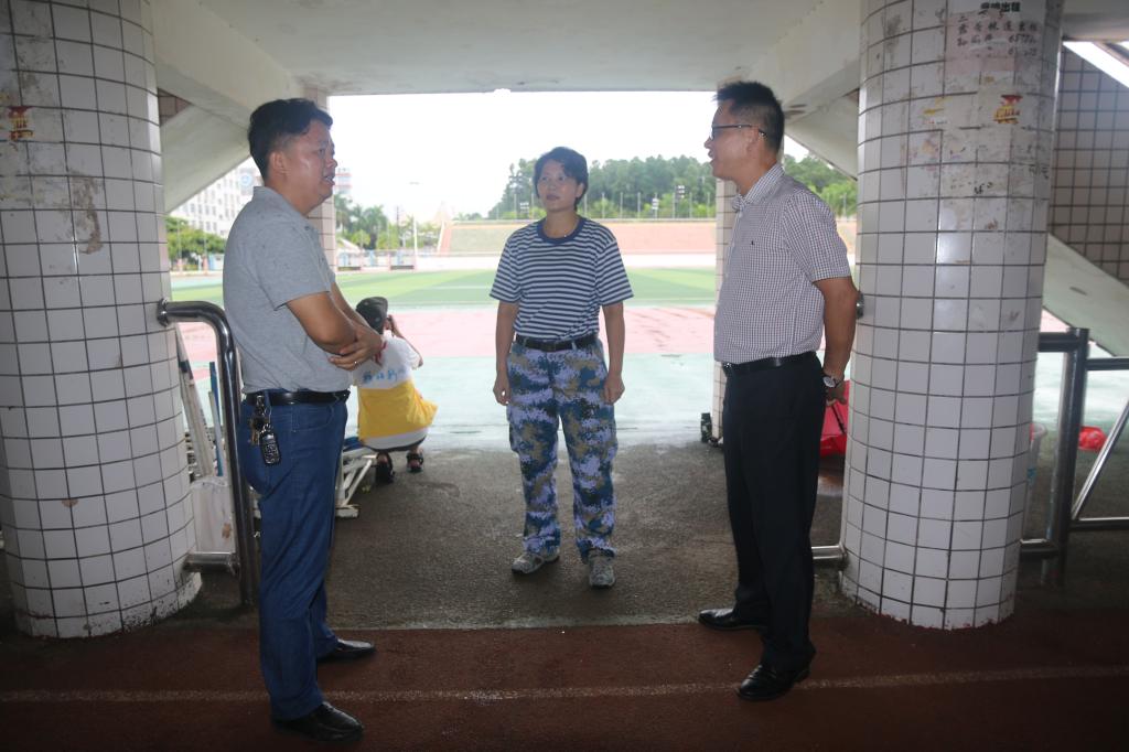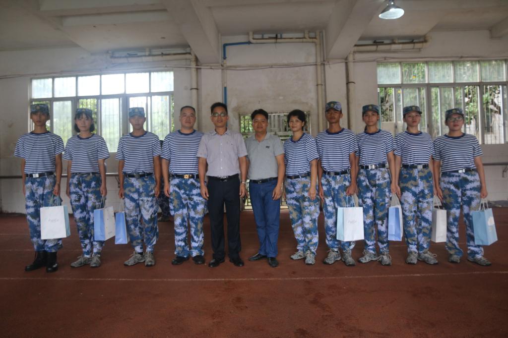 8月29日上午,教科院党委书记郭和才、副书记李德深、辅导员关刘君冒雨到田径场为2018级新生军训带训教官送上慰问品。