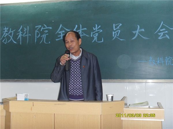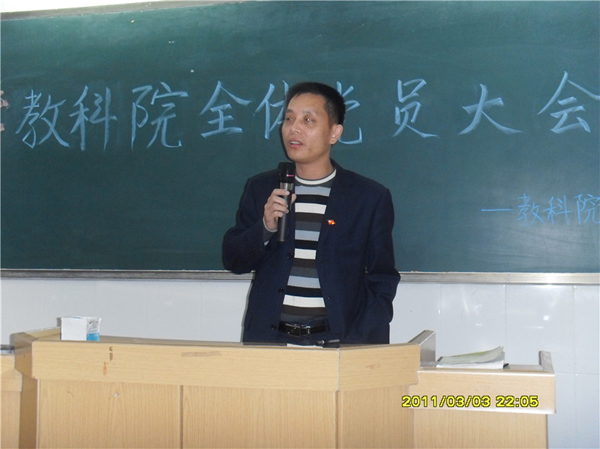 随后,郭和才副书记结合国际国内的发展形势传承了我校党委扩大会议的相关精神,并鼓励各位党员同志要为建设“幸福湛师、幸福教科”的目标而奋斗,发挥并扩大优秀党员的辐射作用。针对新学期,他提出了四点要求:一是要紧密围绕“一个主题,三个重点,三个保障”开展工作,发挥党组织的先锋精神,在学习上、工作上和思想上要“创新争优”发展;二是要注重理论联系实际,秉承主人翁精神凝聚党员力量认真完成各项任务;三是善于创新,开创党建新层面,做好基本工作;四是党员应切实做好引领作用。