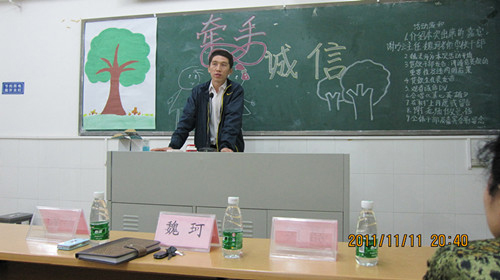 首先,由我院辅导员魏老师针对诚信教育的重要性和必要性发言,他强调要大力开展诚信教育活动,加强大学生的诚信意识。