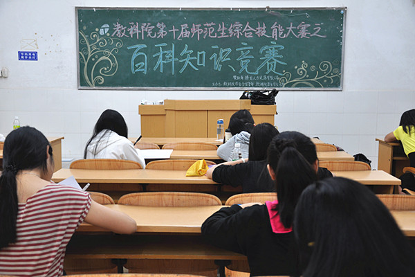5号晚上,教科院于燕雷楼301-302、401-403举行了第十届师范生综合技能大赛之百科知识竞赛。教科院11、12、13级共19个班参加本次班际百科知识竞赛。