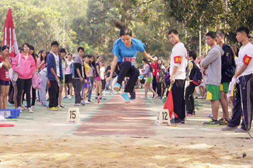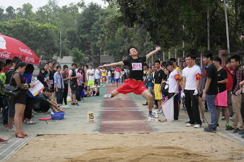 最美的风景不过把努力发挥极致、把汗水洒于赛场(男子跳远现场)