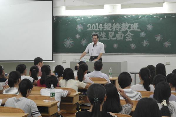 见面会还安排了互动环节,14级特殊教育专业新生纷纷分享自己的特教梦,提出自己对人才培养目标、专业学习等方面的疑问。老师们细心地为大家答疑。八月刚动过肠道手术后冒着生命危险从台湾赶来为特教专业学生授课的吴道愉博士更是以身为范,道明了从事特教事业的目的与追求,深深地打动在场师生。为特殊教育专业学生上课的为大家上课的教授更是让人感动。特殊教育目的,以身立教的志向更让大家感动。