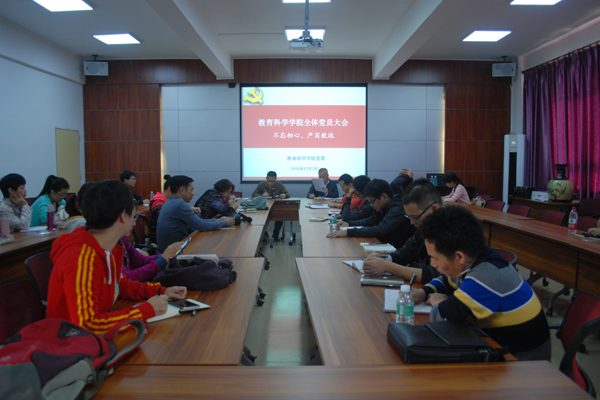 12月7日下午三点,由教育科学学院党委主办的教育科学学院全体党员大会在燕雷楼408会议室如期举行。出席本次大会的人员有教科院党委书记郭和才、教科院院长范兆雄、教科院党委副书记李德深以及教科院各党支部书记、党员。