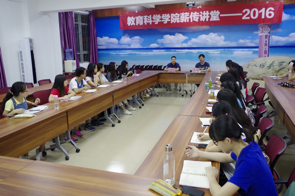 5月24日晚,教科院在燕雷楼408室举行“教育科学学院薪传讲堂—2016”活动。该活动邀请学校招生与就业处陈新兵老师主讲,出席本次活动的成员有教科院辅导员苏贵老师、教科院就业创业促进中心全体干部和2013级各班班长。