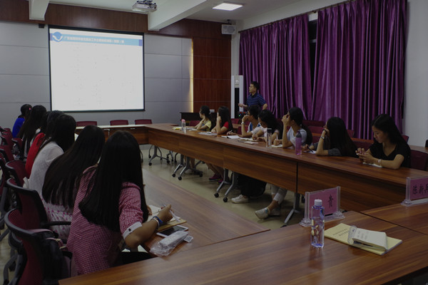 陈新兵为在座的各位学生干部详细讲述了广东省高校毕业生就业工作主要业务流程图,他着重讲述了就业数据的排查、就业协议书的签订、暂缓就业协议书的办理、毕业生改派手续的办理等主要业务的办理流程。在讲述的过程中,陈新兵不时询问各位同学有哪些地方不了解,干部们提出了自己的困惑,他热情解答,现场气氛活跃。