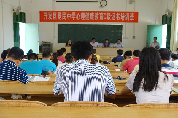 2015年5月6日,教育科学学院联合觉民中学在东海岛觉民中学本校举行了心理健康教育C级证书培训班开班仪式。出席开班仪式的有教育科学学院党委书记赫云鹏、觉民中学校长谢睿以及参加学习的班主任。开班仪式由谢睿主持。