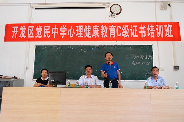 开班仪式上,赫云鹏表示,在市教育局、开发区教育局关心指导下,教科院主动送 “教”下乡到觉民中学,由于此次培训时间紧、任务重,为了举行好这次培训,教科院组织开展了前期调研,掌握觉民中学学生管理中主要存在以下难题:1、孤儿和单身家庭学生因家庭变故缺乏自信,压抑、自卑,耐挫能力差;2、父母吸毒的学生,无人监管教育;3、学校及家庭周边治安环境差,吸毒的年轻人多,学生容易掉进吸毒陷阱;4、搬迁造成居无定所,形成厌学、逃学心理;5、家长对孩子的期望普遍不高,使学生缺乏学习的动力;6、学生学习态度不认真,学习积极性不高;7、逆反心理增强,性格孤僻,缺乏良好的人际环境。赫云鹏表示,针对之前调研,培训课开设了六个专题学习:心理健康教育课程设计;班级管理心理学;中小学心理健康教育概述;中小学生学习心理辅导;教师心理健康教育教育专题;心理档案建设与作用。培训过程中,还通过收集案例进行实例分析,通过建立微信群进行线上答疑。最后,他祝愿此次培训班圆满成功。