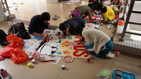 教科院学生参与海报竞赛的热情很高,经过初赛的选拔,共有47组参赛队伍进入决赛。决赛当天虽然寒风凛冽,但仍消退不了选手们的热情。各选手趴在冰凉的地板上以火样的热情专注地调色、描线。参赛团队中,各成员精诚合作、团结一致,为作品能脱颖而出,为了更好地宣传“预防艾滋,珍惜生命”而努力着。经过6个多小时的努力,各参赛团队作品先后完成。评委依次对各作品进行现场点评与评分。