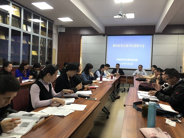 1月10日下午,教科院于408会议室召开党支部书记述职大会,教科院党委书记郭和才、院长范兆雄、党委副书记李德深、副院长郑剑虹以及全体党员教师参加了本次大会。